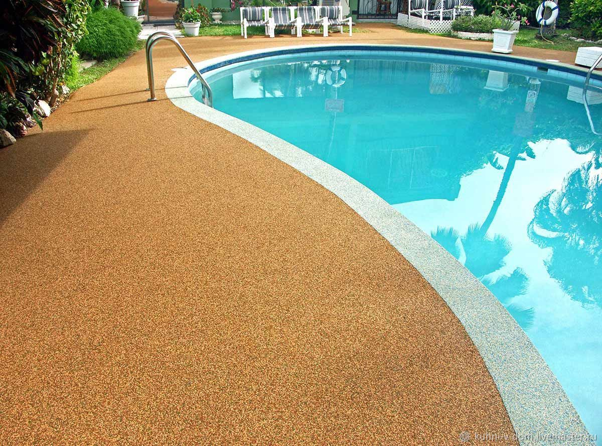 Резиновые покрытия являются оптимальным решением для обустройства территории вокруг бассейна благодаря следующим преимуществам: